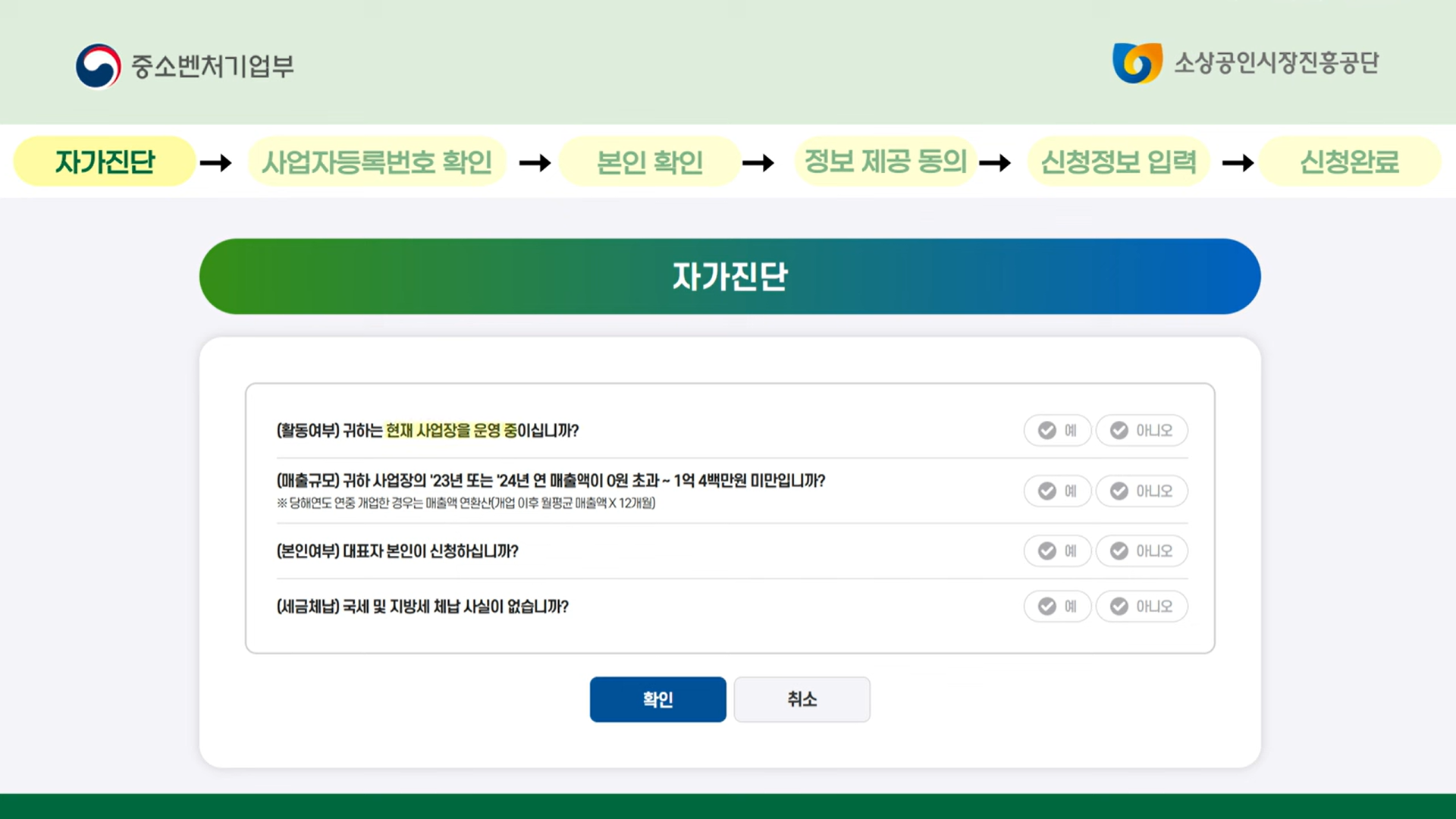 - 검증: 매출액, 폐업 여부 확인 후 증빙 서류 요청